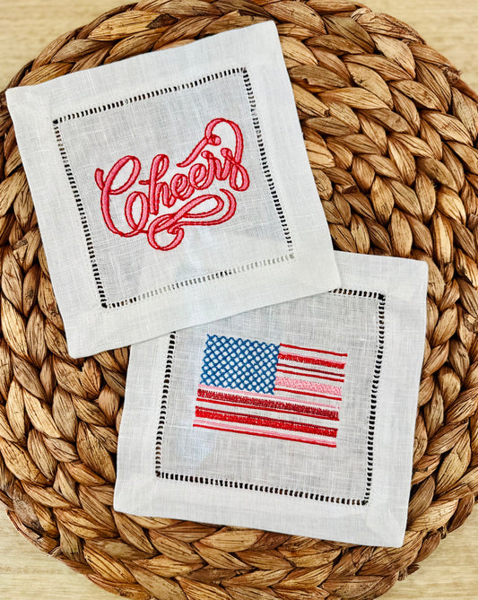 Vintage 'Cheers' Embroidered Cocktail Napkin