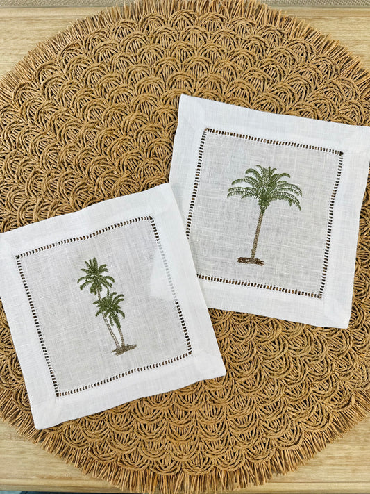 Coastal Palm Tree II Embroidered Cocktail Napkin
