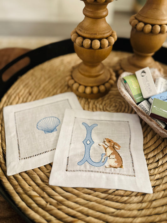 Personalized Initial with Easter Bunny Embroidered Cocktail Napkin