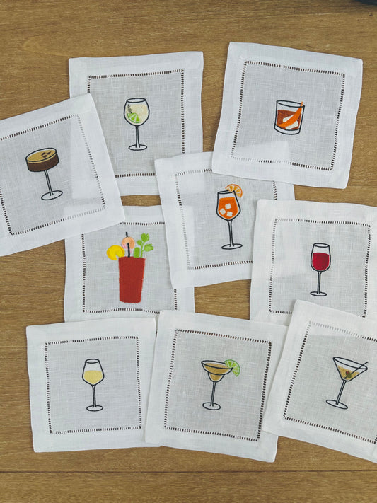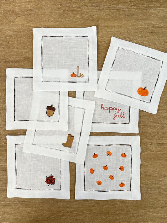 Mini Fall & Autumn Icon Embroidered Cocktail Napkin