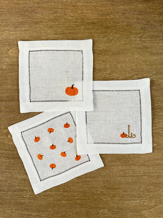 Custom Initial & Pumpkin Embroidered Cocktail Napkin