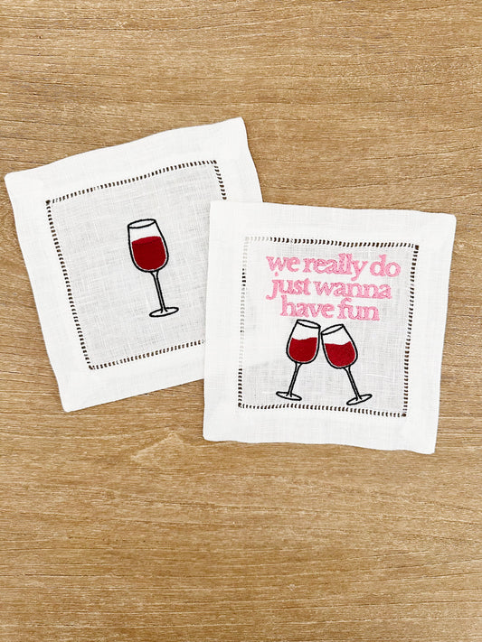 We Really Do Just Wanna Have Fun Embroidered Cocktail Napkin