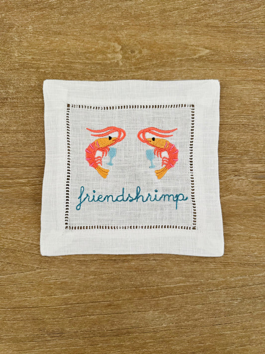 Friendshrimp Shrimp Embroidered Cocktail Napkin