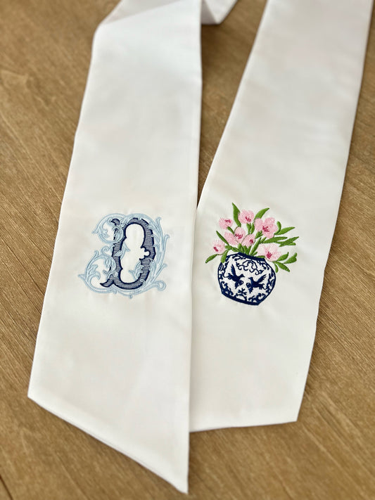 Personalized Chinoiserie Spring Orchid Wreath Sash